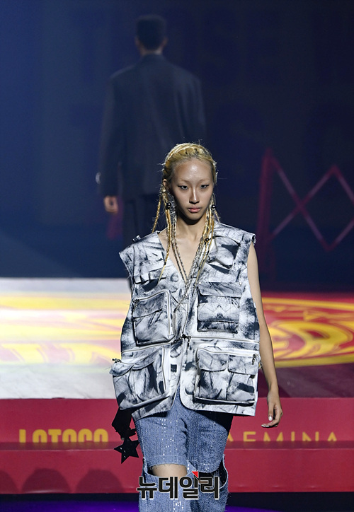 최경호·송현희 디자이너 패션브랜드 '홀리넘버세븐(HOLY NUMBER 7)' 런웨이가 5일 오후 서울 동대문디자인플라자에서 열린 서울패션위크에서 진행되고 있다.