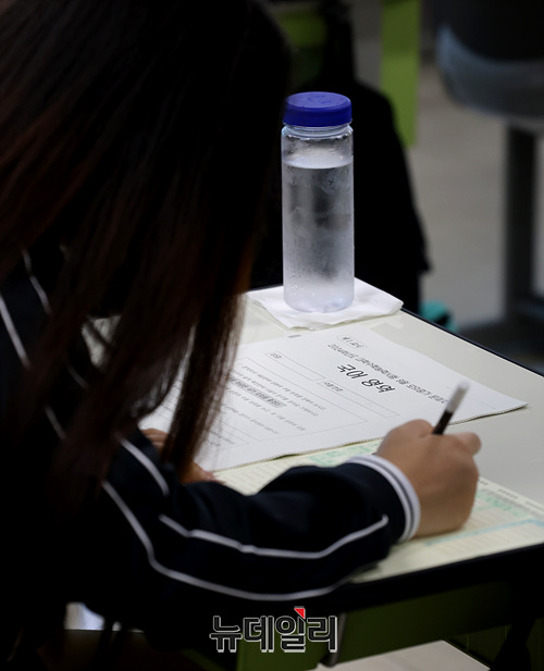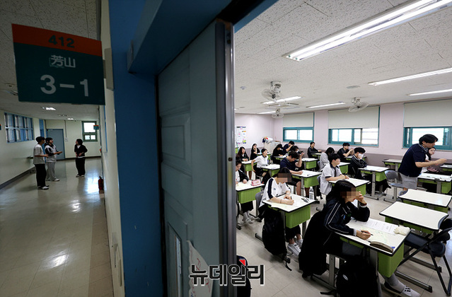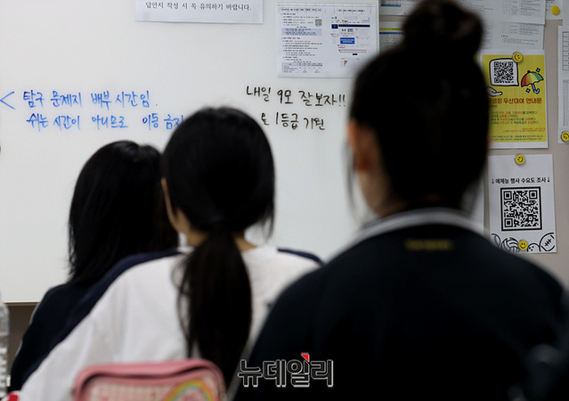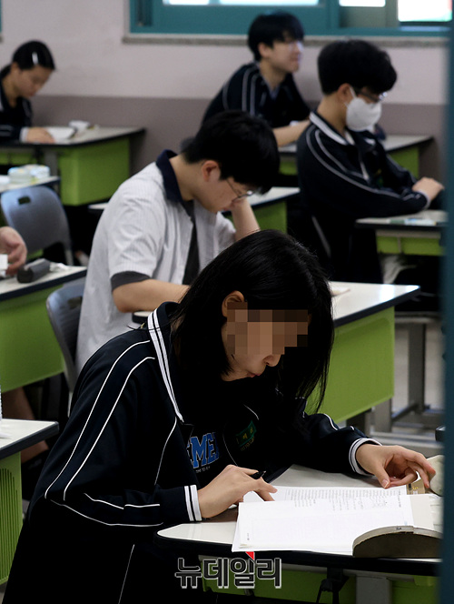 2024학년도 대학수학능력시험을 71일 앞둔 6일 오전 서울 송파구 방산고등학교 학생들이 한국교육과정평가원의 마지막 모의평가를 준비하고 있다.이번 9월 모의평가는 '킬러문항 배제' 이후 처음이자 수능 전 마지막 시험인 만큼 중요도가 높은 시험이다. 한국교육과정평가원에 따르면, 이날 오전 8시40분부터 전국 2,139개 고등학교와 485개 학원 고사장에서 2024학년도 수능 9월 모의평가가 실시된다. 접수자는 총 475,825명이다. (사진=공동취재단)