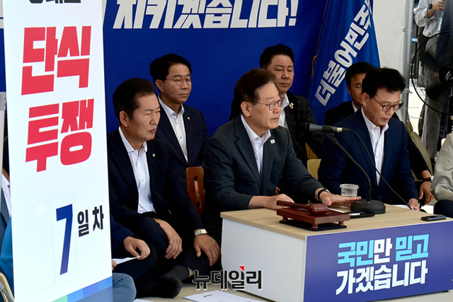[포토] '단식 7일차' 눈감고 있는 이재명 대표