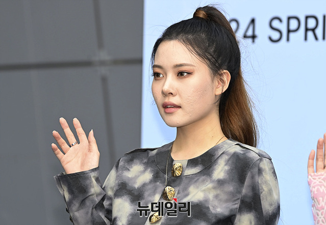 걸그룹 위치스가 6일 오후 서울 중구 동대문디자인플라자에서 열린 서울패션위크 '메종니카' 포토월에서 포즈를 취하고 있다.