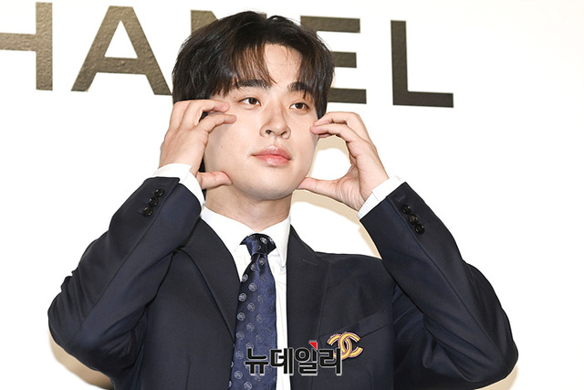 배우 박정민이 6일 오후 서울 강남구 샤넬 플래그십에서 열린 '샤넬 X 프리즈 칵테일 리셉션' 포토월에서 포즈를 취하고 있다.