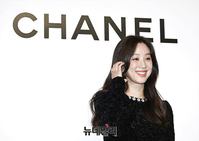 배우 정려원이 6일 오후 서울 강남구 샤넬 플래그십에서 열린 '샤넬 X 프리즈 칵테일 리셉션' 포토월에서 포즈를 취하고 있다.