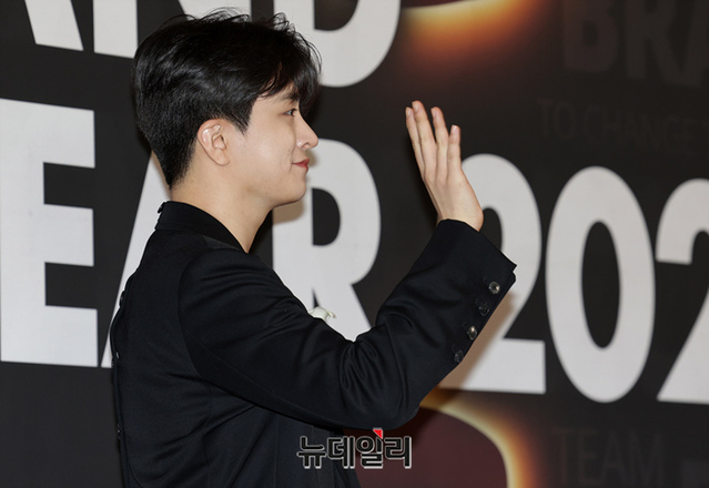 GOT7 영재가 7일 오전 서울 중구 신라호텔에서 한국소비자포럼위원회가 주최한 '2023 올해의 브랜드 대상' 시상식에서 포즈를 취하고 있다.