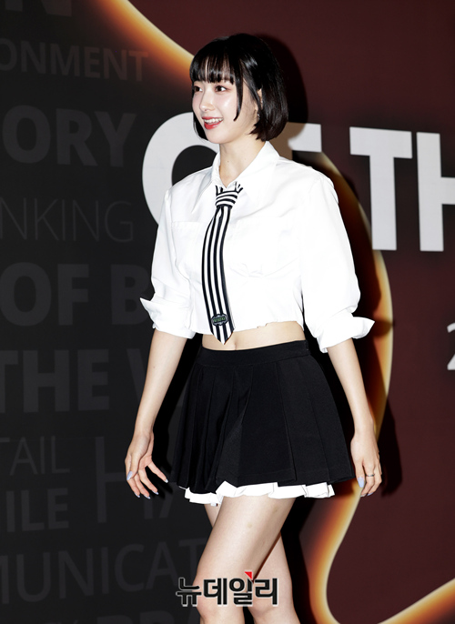 걸그룹 하이키가 7일 오전 서울 중구 신라호텔에서 한국소비자포럼위원회가 주최한 '2023 올해의 브랜드 대상' 시상식에 입장하고 있다.