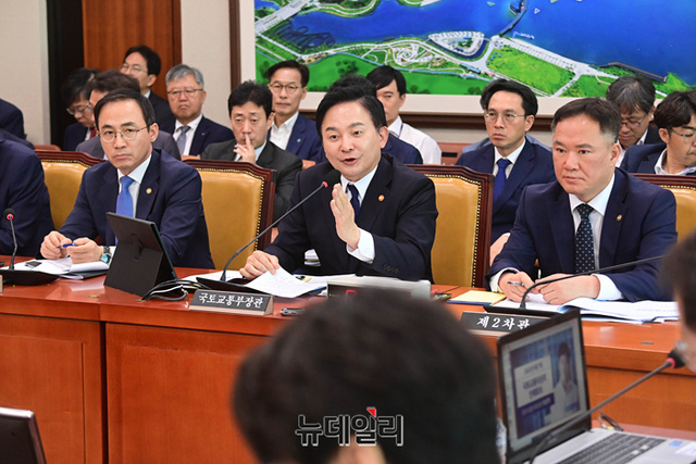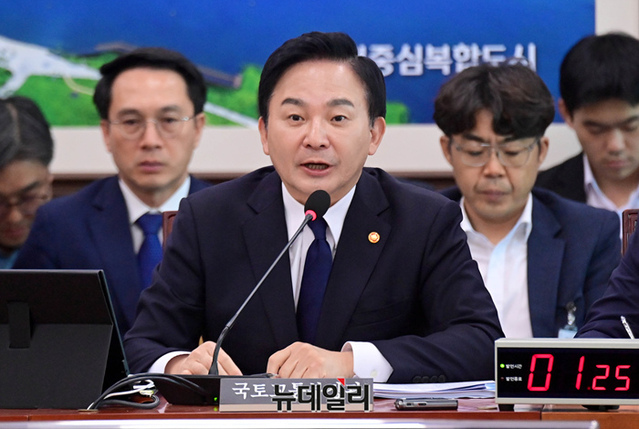 원희룡 국토교통부 장관이 7일 오전 국회에서 열린 국토교통위원회 전체회의에서 의원들의 질문에 답하고 있다.