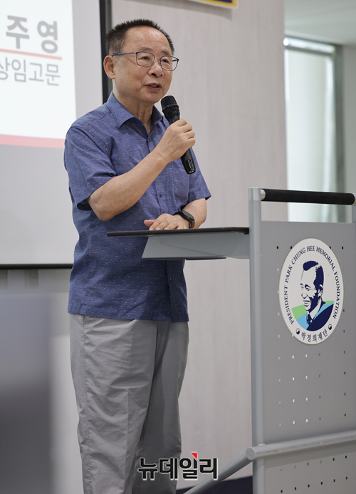 이주영 동북아외교안보포럼 상임고문이 7일 오후 서울 마포구 박정희대통령기념관에서 '국가보안법은 대한민국을 지키고 있는가' 주제로 열린 동북아외교안보포럼에서 축사를 하고 있다.
