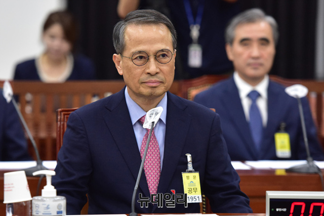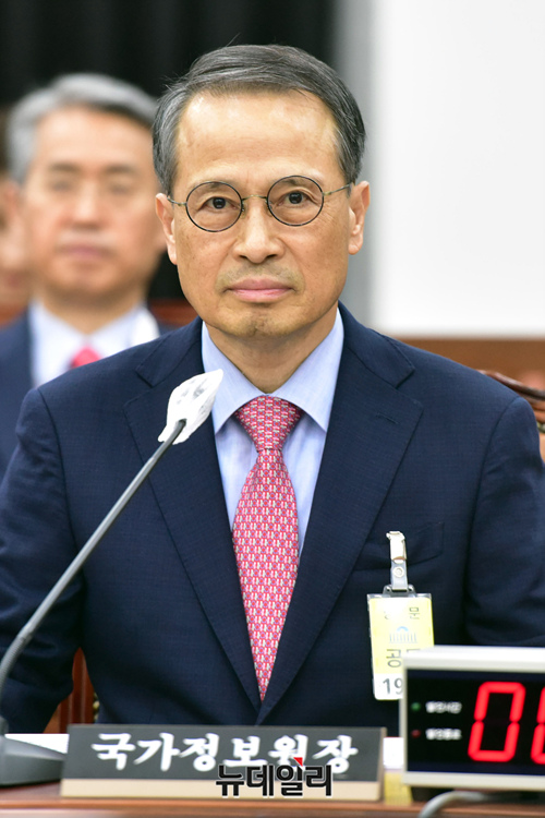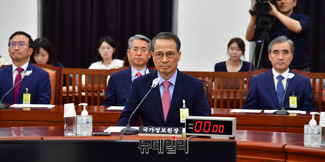 김규현 국가정보원장이 7일 국회에서 열린 정보위원회 전체회의에 출석해 회의 시작을 기다리고 있다.