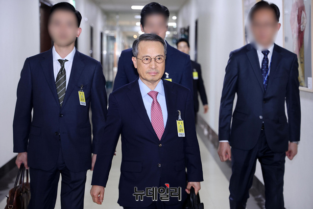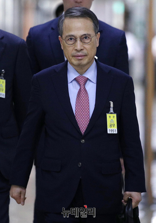김규현 국가정보원장이 7일 국회에서 열린 정보위원회 전체회의에 출석하기 위해 입장하고 있다.