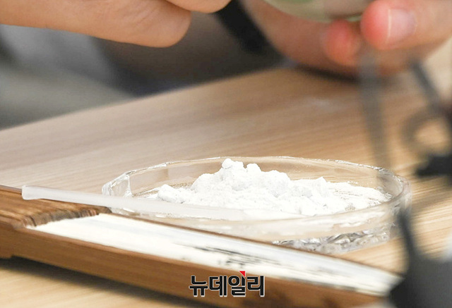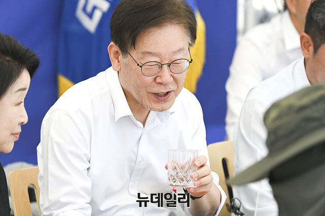 단식 9일차에 접어든 이재명 더불어민주당 대표가 8일 오전 국회 본관 앞에 마련된 단식농성장에서 소금을 섭취하고 있다.