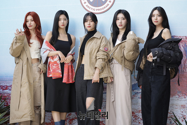 걸그룹 있지 류진, 리아, 채령이 8일 오후 서울 성동구 코사이어티에서 열린 캐나다구스 콜라보 런칭행사에서 포즈를 취하고 있다.