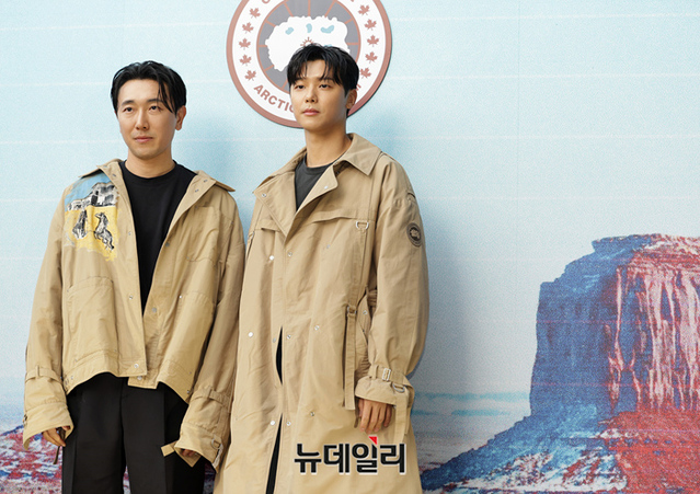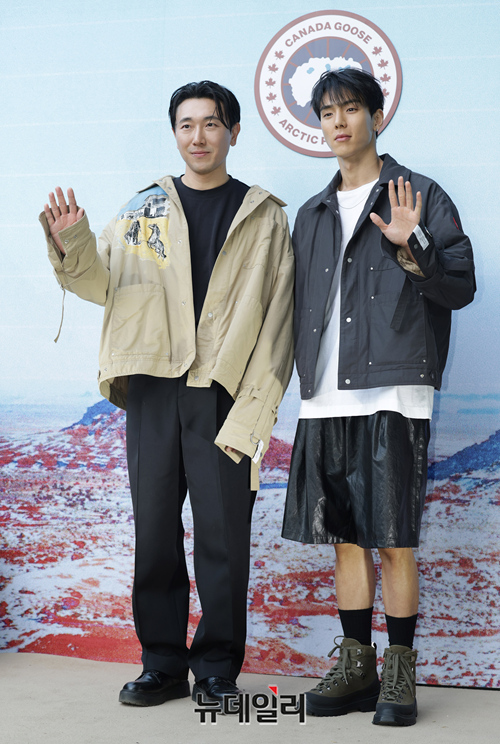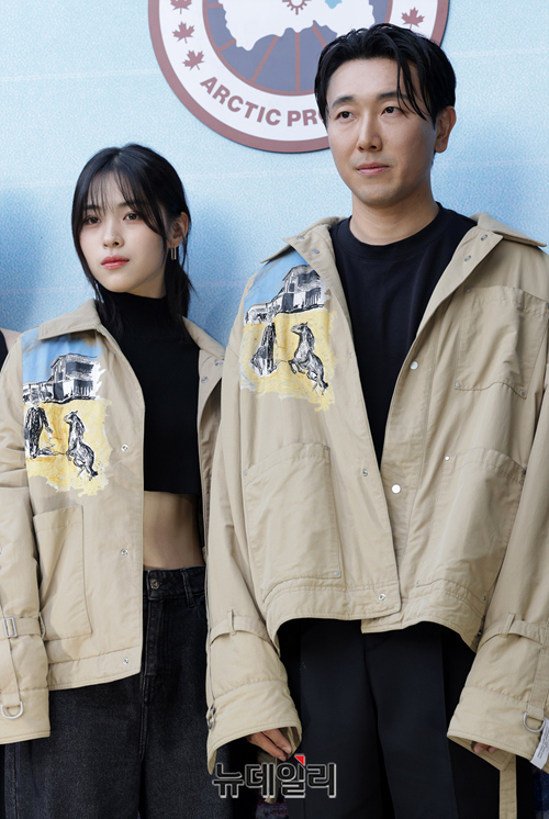 패션디자이너 '록 황'(가운데)과 걸그룹 있지가 8일 오후 서울 성동구 코사이어티에서 열린 캐나다구스 콜라보 런칭행사에서 포즈를 취하고 있다. '록 황'은 런던에 기반을 둔 패션하우스 Rokh를 설립했다. 세계패션 산업을 형성하는 사람들로 인정하는 BoF500에 선정되며 이름을 알리고 있다.