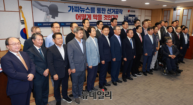 박대출 국민의힘 의원이 11일 오후 국회의원회관에서 '가짜뉴스를 통한 선거공작 어떻게 막을 것인가?' 주제로 열린 토론회에서 축사를 하고 있다.