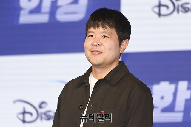김상철 감독이 12일 오전 서울 종로구 JW 메리어트 동대문에서 열린 디즈니+ 오리지널 시리즈 '한강' 제작발표회에서 포즈를 취하고 있다.