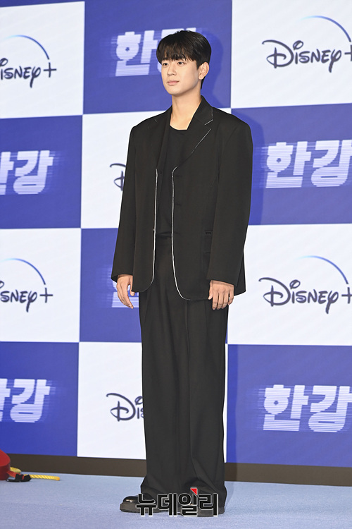 배우 신현승이 12일 오전 서울 종로구 JW 메리어트 동대문에서 열린 디즈니+ 오리지널 시리즈 '한강(감독 김상철)' 제작발표회에서 포즈를 취하고 있다.
