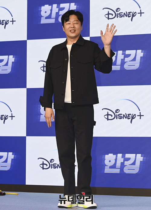 배우 김희원이 12일 오전 서울 종로구 JW 메리어트 동대문에서 열린 디즈니+ 오리지널 시리즈 '한강(감독 김상철)' 제작발표회에서 포즈를 취하고 있다.