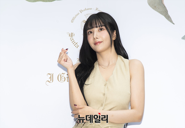 가수 권은비가 12일 오후 서울 성동구 테디스 오븐에서 열린 '산타마리아노벨라 메디치 가든' 팝업 스토어 포토월에서 포즈를 취하고 있다.