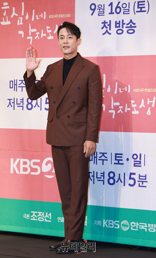 배우 고주원이 12일 오후 서울 구로구 라마다서울신도림 호텔에서 열린 KBS2 주말드라마 '효심이네 각자도생(연출 김형일, 극본 조정선)' 제작보고회에서 포즈를 취하고 있다.