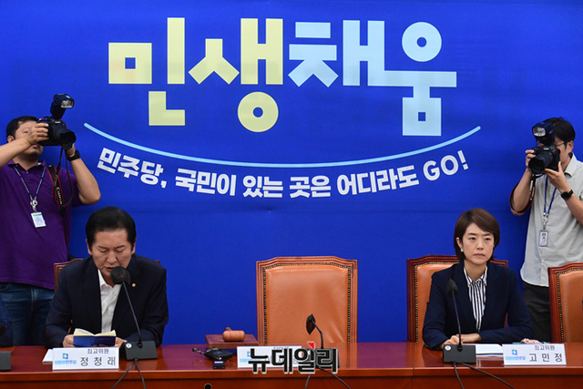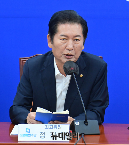 정청래 더불어민주당 최고위원이 13일 오전 국회에서 열린 최고위원회의에서 모두발언을 하고 있다.