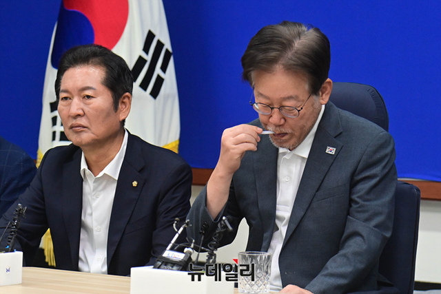 [포토] 소금 먹는 이재명 민주당 대표