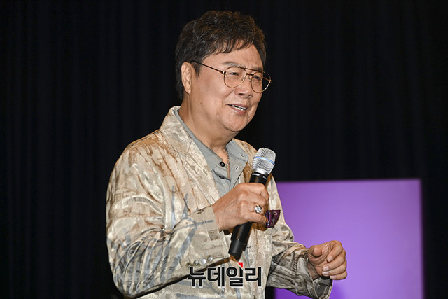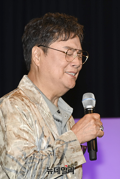 가수 남진이 13일 오후 서울 마포구 YTN홀에서 열린 '가수 남진 신곡 쇼케이스'에서 신곡 '용기 있는 자만이 미인을' 무대를 선보이고 있다.