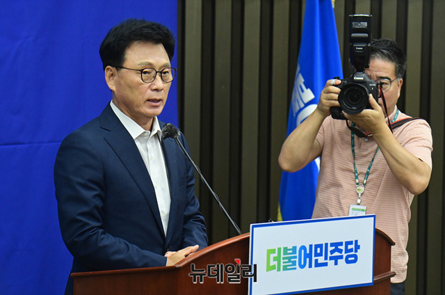 박광온 더불어민주당 원내대표 가 14일 국회에서 열린 의원총회에서 참석해 발언을 하고 있다.