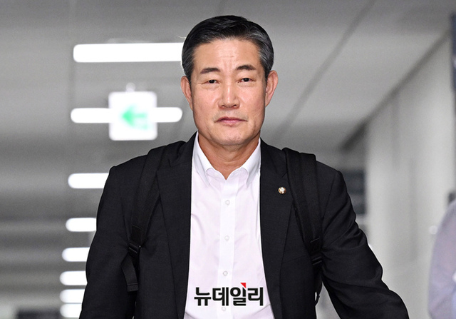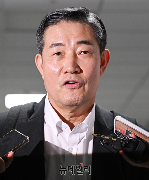 신원식 국방부 장관 후보자가 14일 국회 의원회관에 출근하며 취재진의 질문에 답하고 있다.