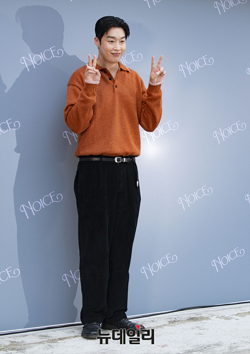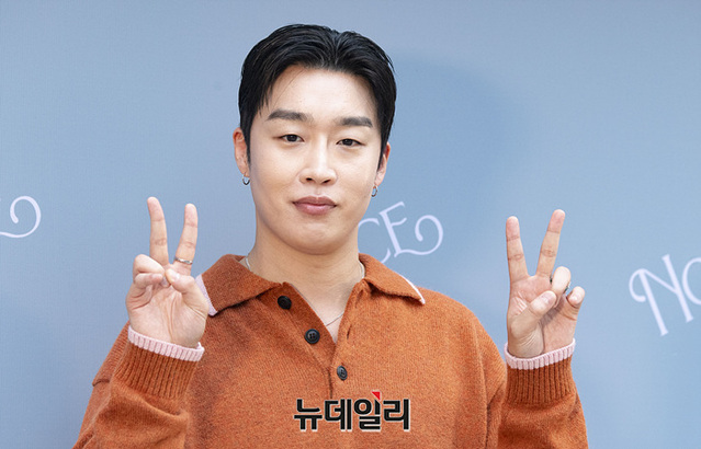 가수 픽보이가 14일 오후 서울 성동구 디플랫 성수에서 열린 데일리 워크웨어 브랜드 '노이스(NOICE)' 팝업스토어 오픈 기념 포토월에서 포즈를 취하고 있다.