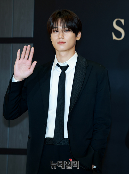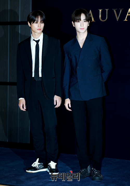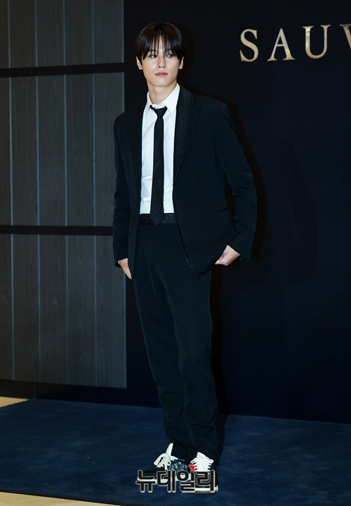 더보이즈 주연이 15일 정오 서울 송파구 롯데백화점 에비뉴엘 월드타워점 지하 1층 행사장에 오픈한 남성 향수 '디올 소바쥬' 팝업스토어 오픈행사에서 포즈를 취하고 있다.