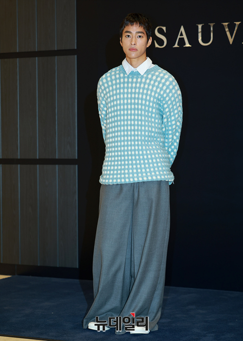 모델 홍태준이 15일 정오 서울 송파구 롯데백화점 에비뉴엘 월드타워점 지하 1층 행사장에 오픈한 남성 향수 '디올 소바쥬' 팝업스토어 오픈행사에서 포즈를 취하고 있다.