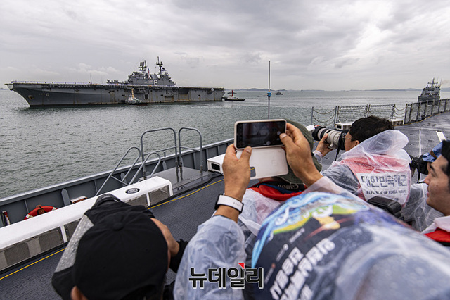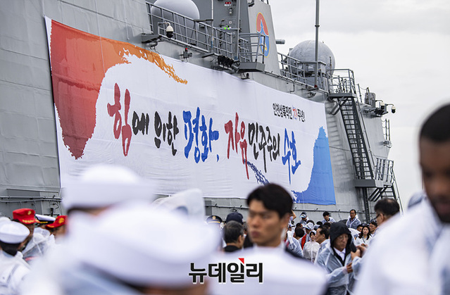 국민참관단이 15일 오전 인천항 수로에서 열린 제 73주년 인천상륙작전 전승행사에 참관하고 있다.역대 최초로 대통령이 주관한 이번 전승행사는 한미동맹 70주년을 기념하고 인천상륙작전의 역사적 의미와 가치를 재조명해 참전용사들의 고귀한 희생정신을 기리는데 중점을 둔 것이 특징이다.이번 행사에는 마라도함, 서애류성룡 이지스 구축함(DDG), 천지급 군수지원함(AOE), 인천급 호위함(FFG), 해경 경비함 3005호, 윤영하급 유도탄고속함(PKG), 해군 고속정 편대(PKM), 미국 아메리카급 강습상륙함, 캐나다 벤쿠버함 호위함이 전승행사에 참여했다. (인천=서성진 기자)