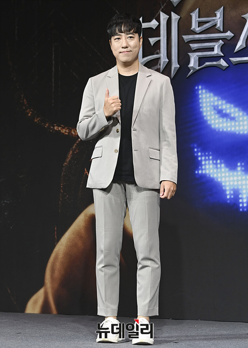 과학 유튜버 궤도가 18일 오전 서울 중구 앰베서더 서울 풀만 호텔에서 열린 넷플릭스 예능 '데블스 플랜(연출 정종연)' 제작발표회에서 포토타임을 갖고 있다.