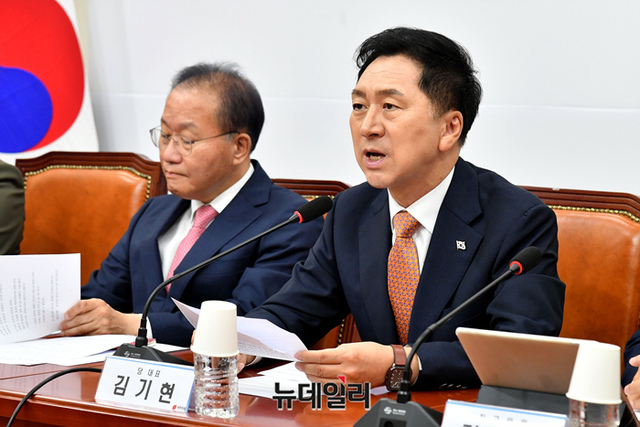 김기현 국민의힘 대표가 25일 오전 국회에서 열린 최고위원회의에서 모두발언을 하고 있다.
