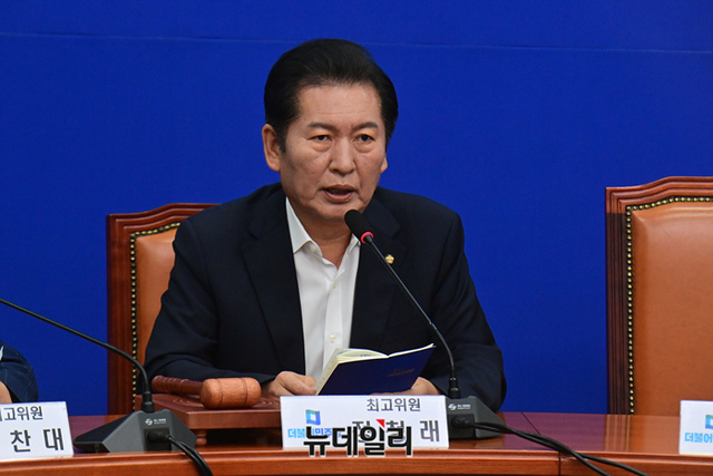 정청래 더불어민주당 최고위원이 25일 오전 국회에서 열린 최고위원회의에서 모두발언을 하고 있다.