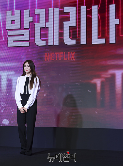 배우 박유림이 25일 오후 서울 마포구 호텔 나루 서울 엠갤러리에서 열린 넷플릭스 영화 '발레리나(감독 이충현)' 제작보고회에서 포토타임을 갖고 있다.