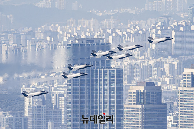 대한민국 육군,공군,해군 회전익 항공기와 고정익 항공기들이 22일 오전 서울공항에서 진행된 제 75주년 국군의 날 미디어데이에서 축하비행을 하고 있다.제75주년 국군의날은 '강한 국군, 튼튼한 안보, 힘에 의한 평화'를 주제로 26일 열린다. 이날 오전 서울공항에서 진행되는 기념식 공중분열에는 국산 기술로 만든 최초의 한국형 전투기 KF-21과 국내 개발 헬기 LAH가 선도비행한다.이어 오후에 광화문 일대에는 시가행진이 예정돼 있다. 행진에는 해군 전력 최초로 정조대왕함이 AR영상으로 서울시내에 출항한다.