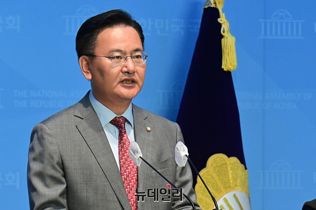 유상범 국민의힘 수석대변인이 4일 오전 국회 소통관에서 현안 관련해 논평하고 있다.이날 유 대변인은 지난 1일 열린 항저우 아시안게임 축구 한국과 중국의 8강전에서 포털사이트 다음 응원 페이지에서는 중국팀을 클릭 응원한 비율이 전체의 91%에 달한 것과 관련해 "네이버 등 다른 대형 포털의 경우 유사한 서비스를 제공하고 있었음에도 문제 상황에 노출되지 않았다"라며 "오직 다음·카카오만이 드루킹의 놀이터이자 온상으로 전락하고 만 것"이라고 대응을 비판했다.