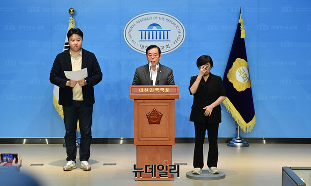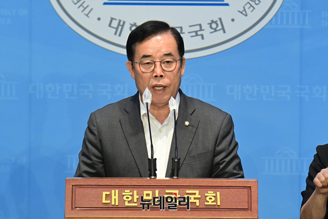 국회 과방위 박성중 국민의힘 간사가 4일 오후 국회 소통관에서 다음 여론조작 관련 기자회견을 하고 있다.