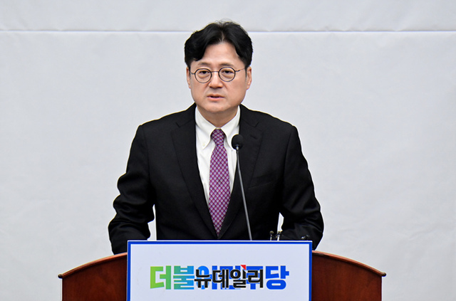 홍익표 더불어민주당 원내대표가 4일 오후 국회에서 열린 의원총회에서 모두발언을 하고 있다.