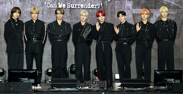 아이돌그룹 이펙스가 4일 오후 서울 용산구 블루스퀘어에서 열린 6번째 EP앨범 '불안의 서 챕터2' 쇼케이스에서 포토타임을 갖고 있다.