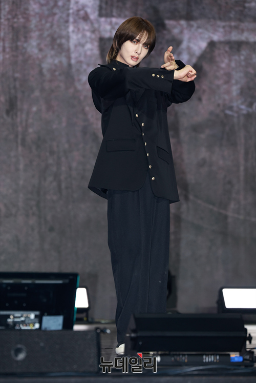 이펙스 뮤가 4일 오후 서울 용산구 블루스퀘어에서 열린 6번째 EP앨범 '불안의 서 챕터2' 쇼케이스에서 포토타임을 갖고 있다.이번 앨범은 이펙스가 데뷔 때부터 이어온 '불안의 서' 시리즈를 완결 짓는 마지막 앨범이다.학교폭력에 맞서는 이펙스의 강렬한 기세를 담은 타이틀곡 '풀 메탈 재킷'은 묵직한 베이스라인과 터질듯한 기타 사운드가 어우러져 폭발적인 에너지를 느낄수 있다.이펙스와 20명의 댄서들이 만들어 내는 퍼포먼스는 댄스 크루 '저스트 절크'가 디렉팅을 맡았다. 음원은 오후 6시 공개.