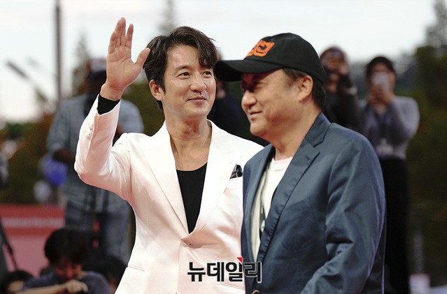 배우 정준호가 4일 오후 부산 해운대구 영화의전당에서 열린 '제28회 부산국제영화제 개막식' 레드카펫에서 입장하며 포즈를 취하고 있다.