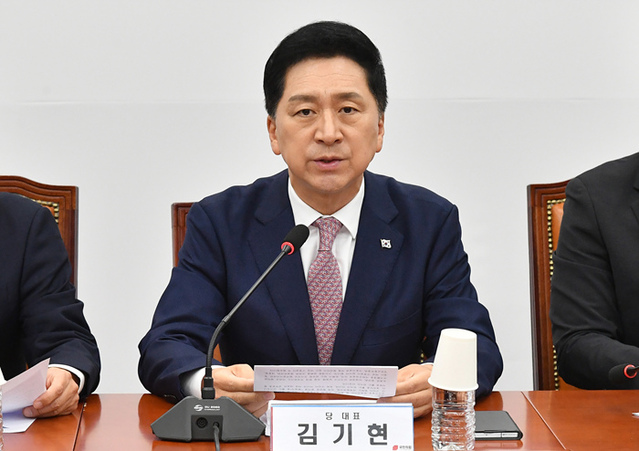 김기현 국민의힘 대표가 5일 오전 국회에서 열린 최고위원회의에 모두발언을 하고 있다.