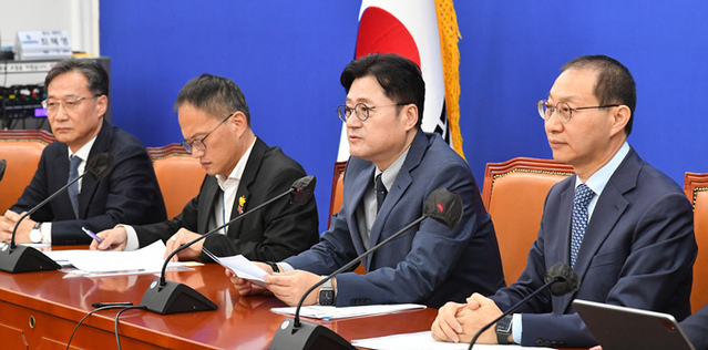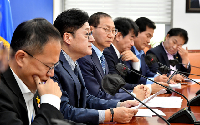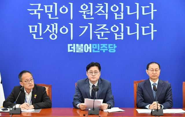 홍익표 더불어민주당 원내대표가 5일 오전 국회에서 열린 정책조정회의에서 모두발언을 하고 있다.