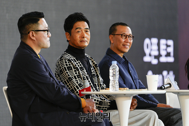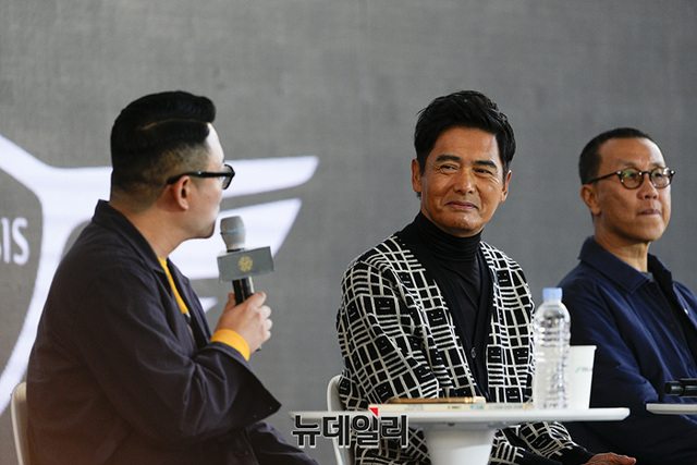 홍콩배우 주윤발이 5일 오후 부산 해운대구 영화의전당 BIFFGENESIS 야외무대에서 열린 '주윤발의 영웅본색 오픈토크'에서 대화를 나누고 있다.