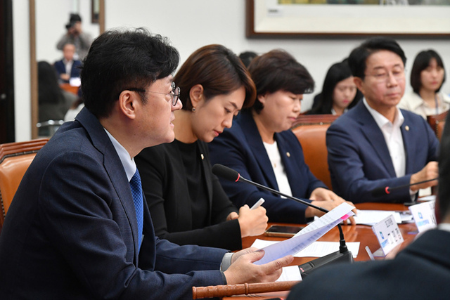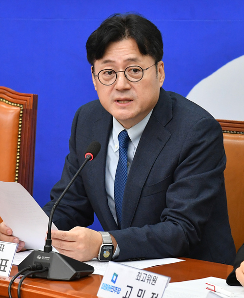홍익표 더불어민주당 원내대표가 6일 국회에서 열린 최고위원회의에서 모두발언을 하고 있다.