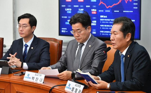 정청래 더불어민주당 최고위원이 6일 국회에서 열린 최고위원회의에서 모두발언을 하고 있다.