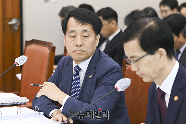 장영진 산업통상자원부 1차관이 10일 오전 국회에서 열린 국회 산업통상자원중소벤처기업위원회 산업부 국정감사에서 의원들의 질의를 듣고 있다.
