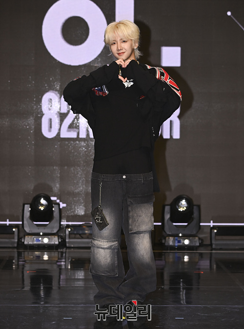 보이그룹 에이티투메이저(82MAJOR) 남성모가 11일 오전 서울 강남구 일지아트홀에서 열린 데뷔앨범 '온(ON)' 쇼케이스에서 포토타임을 갖고 있다.
