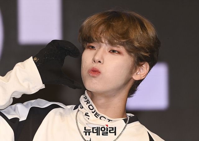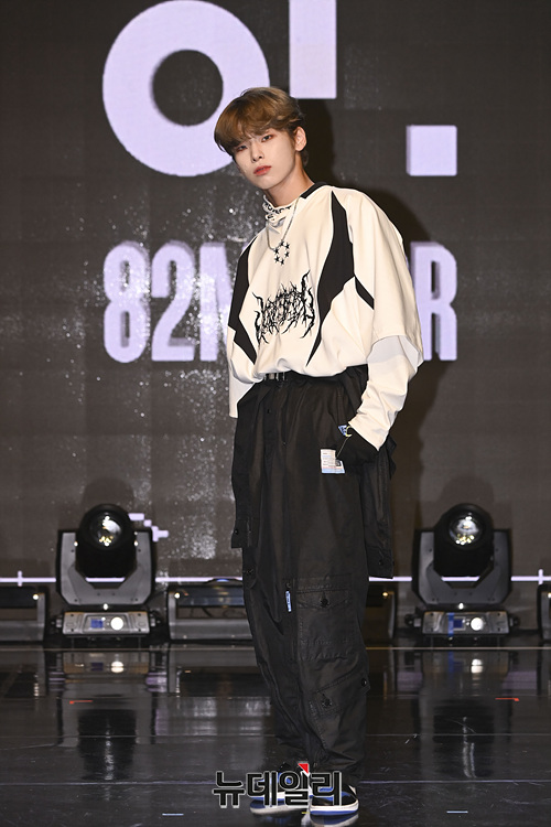 보이그룹 에이티투메이저(82MAJOR) 김도균이 11일 오전 서울 강남구 일지아트홀에서 열린 데뷔앨범 '온(ON)' 쇼케이스에서 포토타임을 갖고 있다.
