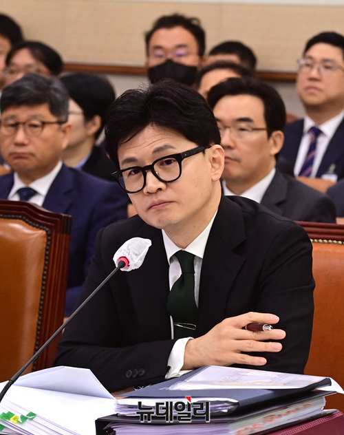 한동훈 법무부 장관이 11일 오전 국회에서 열린 법무부 국정감사에서 의원들의 질의에 답하고 있다.